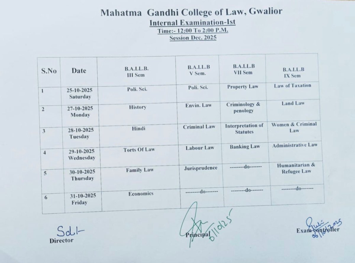Add : Mahatma Gandhi College of Law, Cancer Hills Road, Gwalior - 474009 (M.P.)